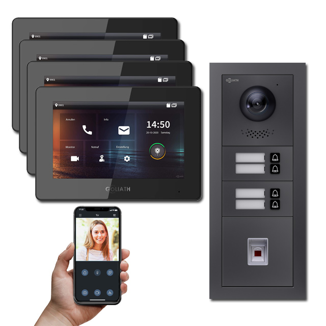 - 4 x GOLIATH Hybrid 2-Draht Video Türsprechanlage nach Wahl, AV-2BI-22WV2 (Weiß) oder AV-2BI-22SV2 (Schwarz)