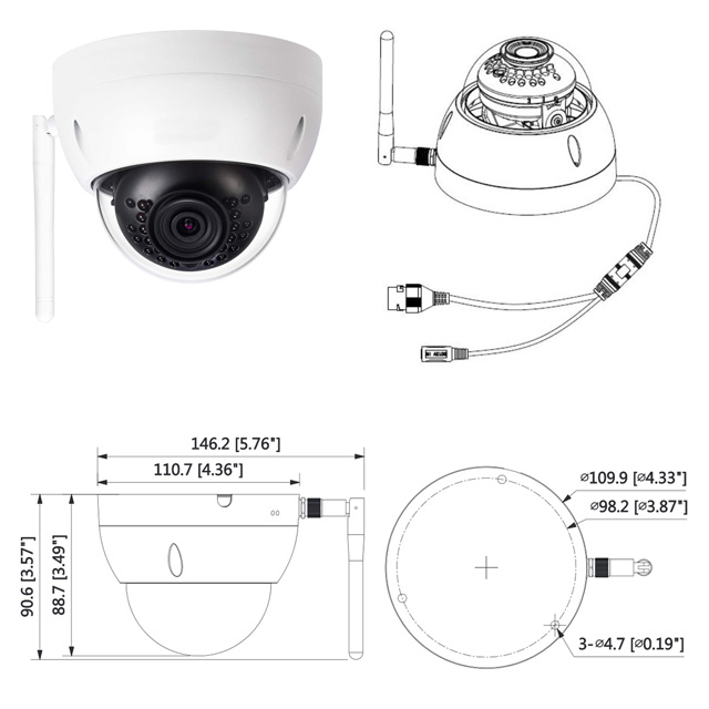 Die hochauflösende IP WLAN Dome Überwachungskamera mit 4 Megapixeln und einem 2,8mm Objektiv zeichnet sich zu jeder Zeit durch die hervorragenden Bilder aus. Das bereits im Lieferumfang enthaltene und vorinstallierte 2,8mm Objektiv erlaubt einen flexiblen Einsatz der Kamera.
