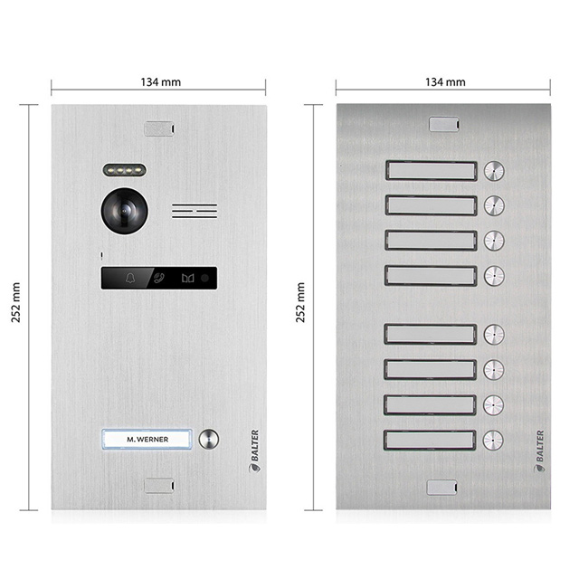 Die in Aluminium gehaltene Balter Video Türstation ist der neue Blickfang an ihrem zu Hause. Die Balter Videotürsprechanlage überzeugt durch ihre hochwertige Verarbeitung und die hochauflösende Kamera mit einem Weitwinkel von 150°.