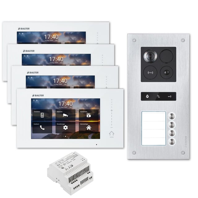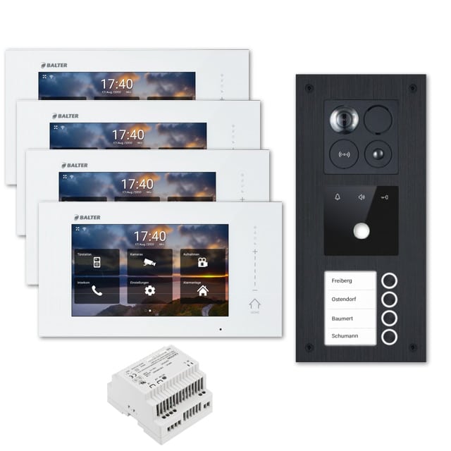 Balter ERA Türsprechanlage | WLAN | RFID | Fingerprint | 2-Draht BUS für 1-Familienhaus | 3 x 7″ HD Touchscreen-Monitor | Hauptstromverteiler