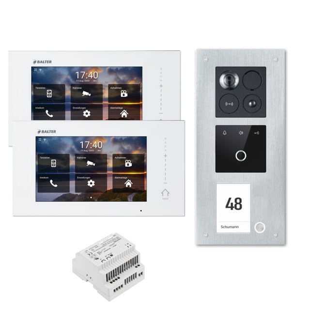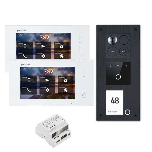 Balter ERA Türsprechanlage | WLAN | RFID | Fingerprint | 2-Draht BUS für 4-Familienhaus | 4 x 7″ HD Touchscreen-Monitor | Hauptstromverteiler