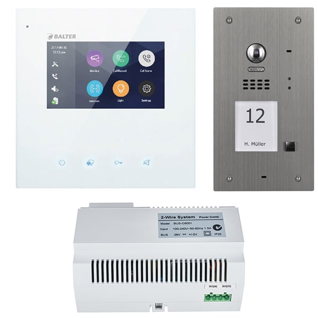 - 1 x BALTER Hauptstromverteiler, 2-Draht BUS Technologie, Stromversorgung für bis zu 6 Monitore und 2 Türstationen – BUS-C6002H