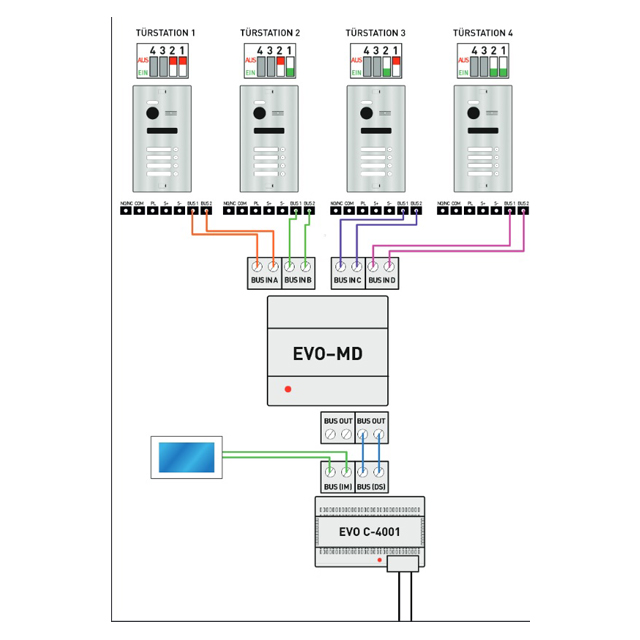 Durch Adressierung können Sie bis zu 4 Türstationen in einem EVO System betreiben. Alle Türstationen müssen über eine eigene Adresse verfügen.
