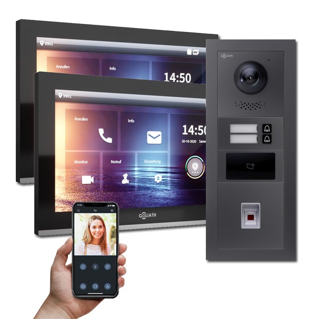 oder AV-2BI-22SV2 (Schwarz) - 1 x GOLIATH Türstation nach Wahl: AV-VTA02-22V2 (Silber) oder AV-VTA02-22AV2 (Anthrazit)