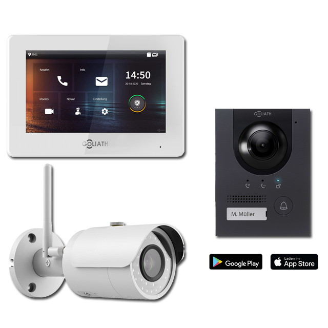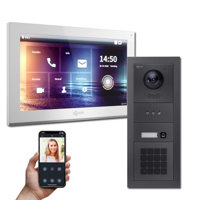 Goliath IP Video Türsprechanlage Hybrid | 1-Familie | 7 Zoll | WLAN Kamera | 180° Kamera