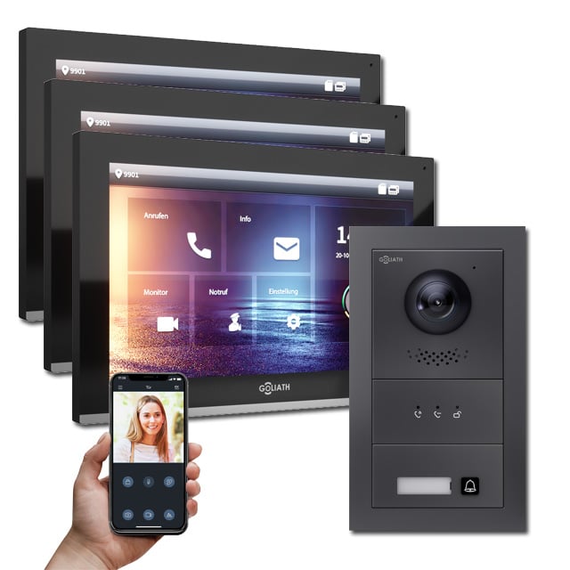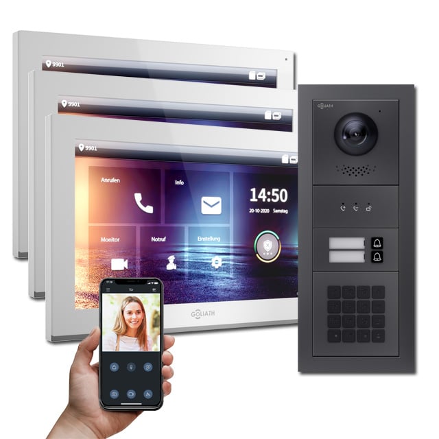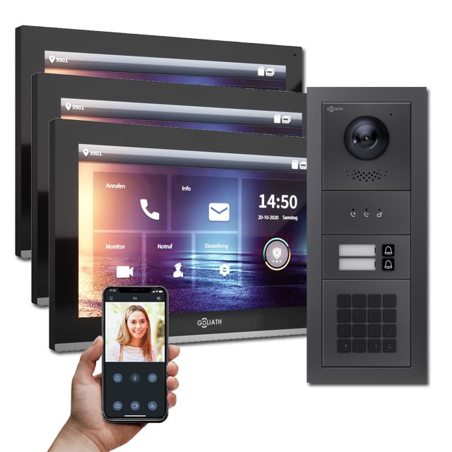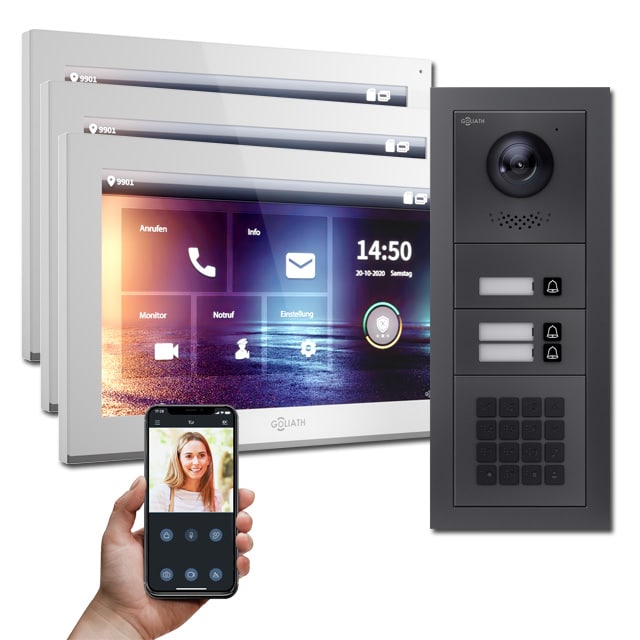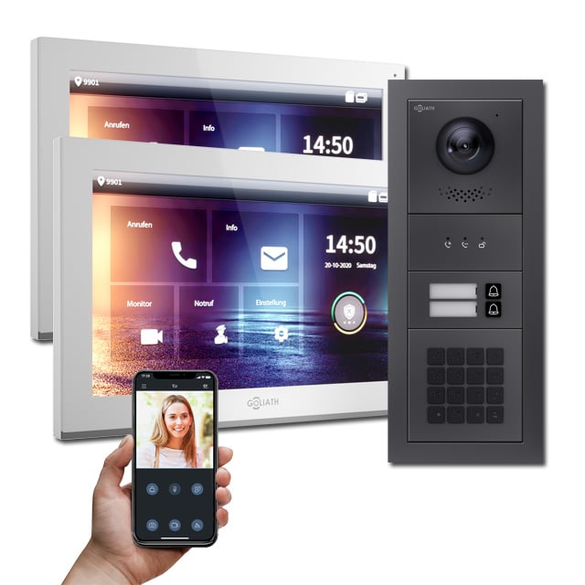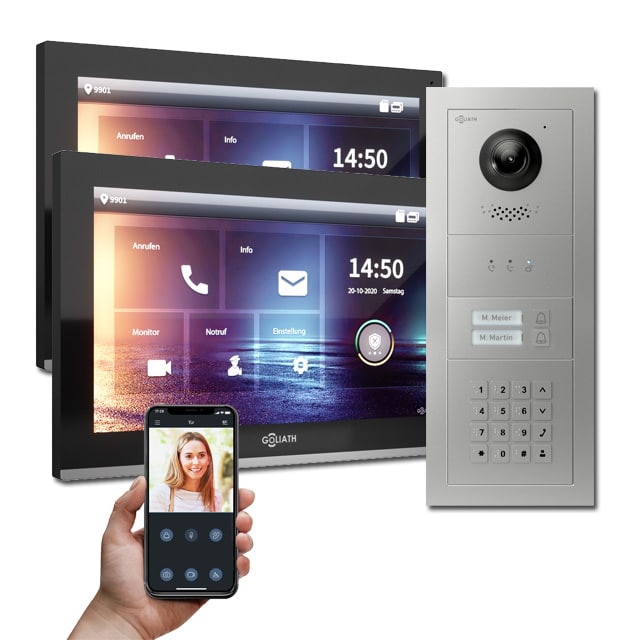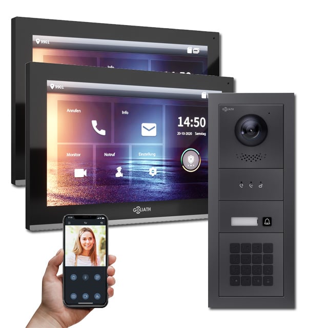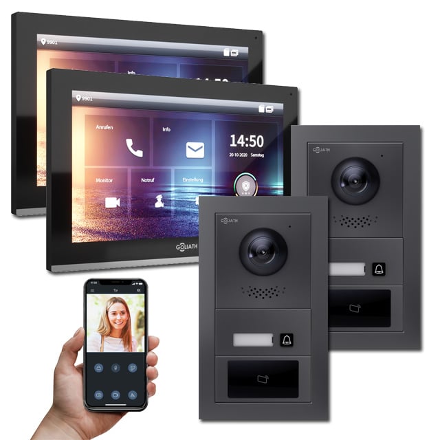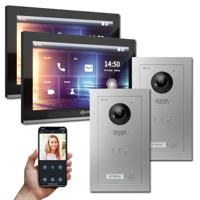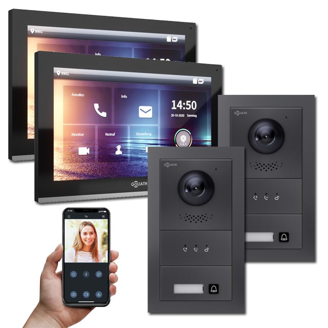 Goliath IP Türsprechanlagen Hybrid sind die Zukunft. Denn die vielfältigen Einsatzbereiche, Auflösung und die Erweiterbarkeit der IP Türsprechanlagen von Goliath sind weitaus größer als die der analogen Gegensprechanlagen.