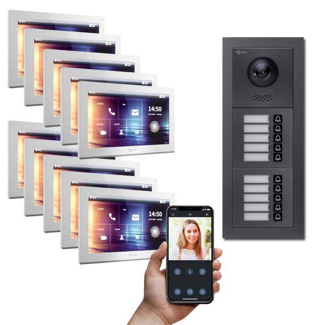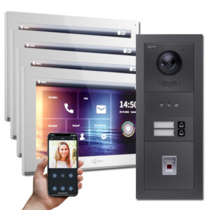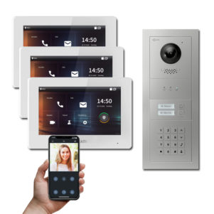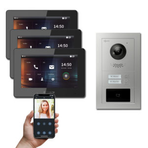 Die Goliath IP Türsprechanlagen Hybrid lässt sich problemlos erweitern. Weitere Kameras können eingebunden werden, die dann auch zur Überwachung und Kommunikation vom PC Bildschirm aus genutzt nutzbar sind. Dazu wird einfach eine Software für IP Kameras verwendet. So benötigen Sie keinen weiteren externen Gong für einen anderen Raum, sondern erhalten stets ein Signal über Handy oder von der Innenstation die Meldung, wenn jemand vor der Tür steht.
