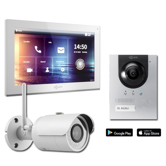 Zusammen mit einem GOLIATH DVR-Rekorder und weiteren Goliath IP Kameras, können Sie somit aus der Goliath IP Türsprechanlage ein komplettes Videoüberwachungssystem erstellen. Für Ihr Haus und Gründstück die perfekte Überwachung. Bewegungen werden auf dem DVR-Rekorder aufgezeichnet. Durch Push Mitteilungen auf Ihr Smartphone sind Sie immer informiert, sobald die Kameras Bewegungen registrieren. Auch von unterwegs ist ein Zugriff auf die Türsprechanlage und Kameras möglich. Das sind nur einige Vorteile einer Goliath IP Video Türsprechanlage.