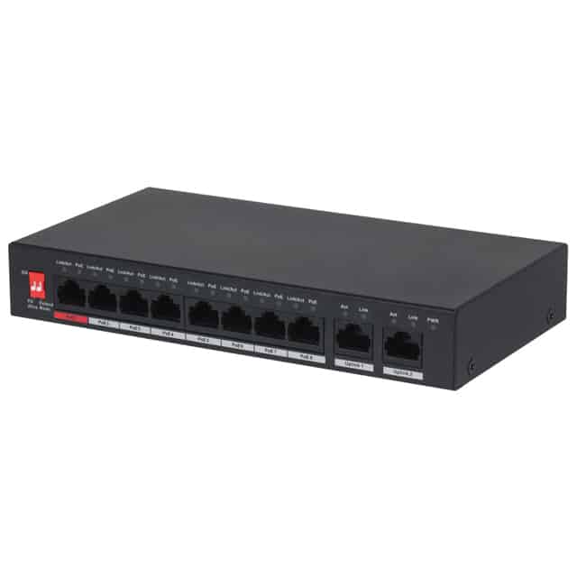 - Datenübertragungs Port: Port 1–8: 8 x RJ-45 10/100 Mbps (PoE) Port 9-10: 2 x RJ-45 10/100/1000 Mbps (Uplink)